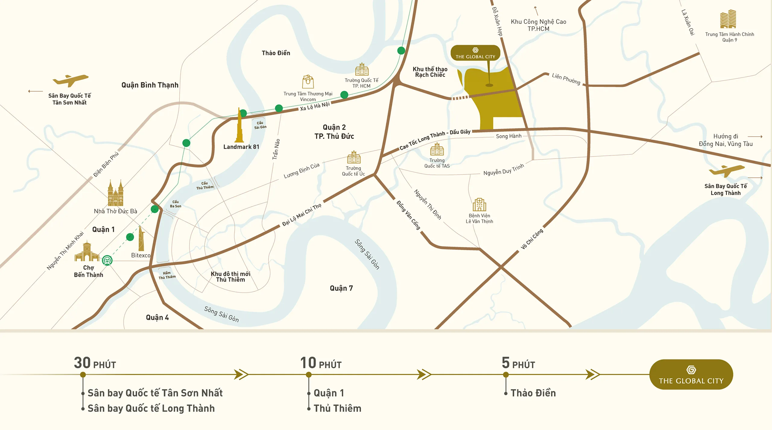 - 15 phút đến đại lộ Võ Văn Kiệt qua hầm Thủ Thiêm, kết nối trực tiếp đến khu đô thị Thủ Thiêm.