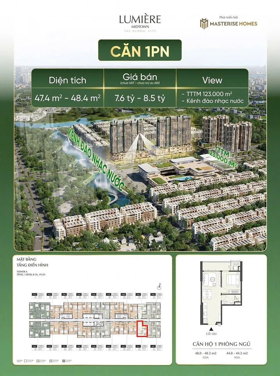 Tòa tháp Lumière Midtown thuộc khu phức hợp The Global City do Masterise Homes phát triển, nằm tại phường An Phú, TP. Thủ Đức, TP. Hồ Chí Minh. Đây là một trong những tòa tháp cao tầng đẹp nhất dự án, sở hữu vị trí đắc địa ngay trung tâm đại đô thị, liền kề kênh đào nhạc nước dài nhất Đông Nam Á với quy mô 2 km.